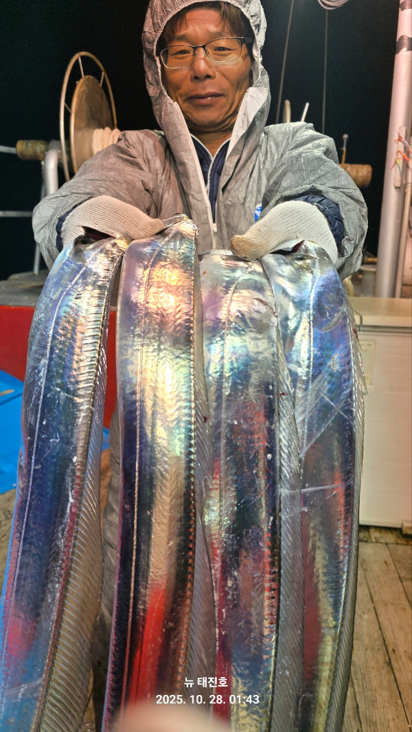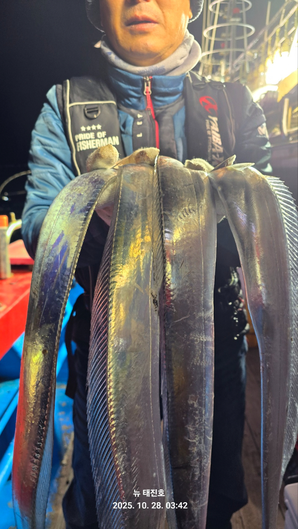 | 제목 : 뉴 태진호 왕갈치 4지급 씨알급 최고 조황!!!( 오늘 정상출쌍)!!! | ||