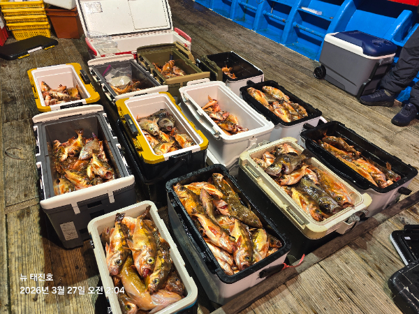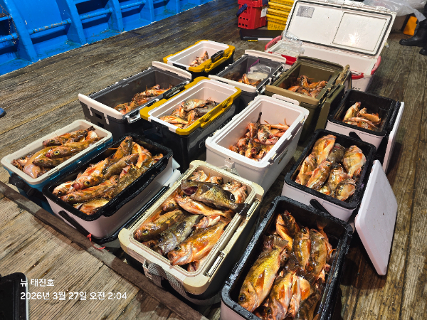 | 제목 : 뉴 태진호 왕볼락@ 왕돼지열기 30~35cm급들 쿨러조황!!!!( 오후3시 출항)!!! | ||